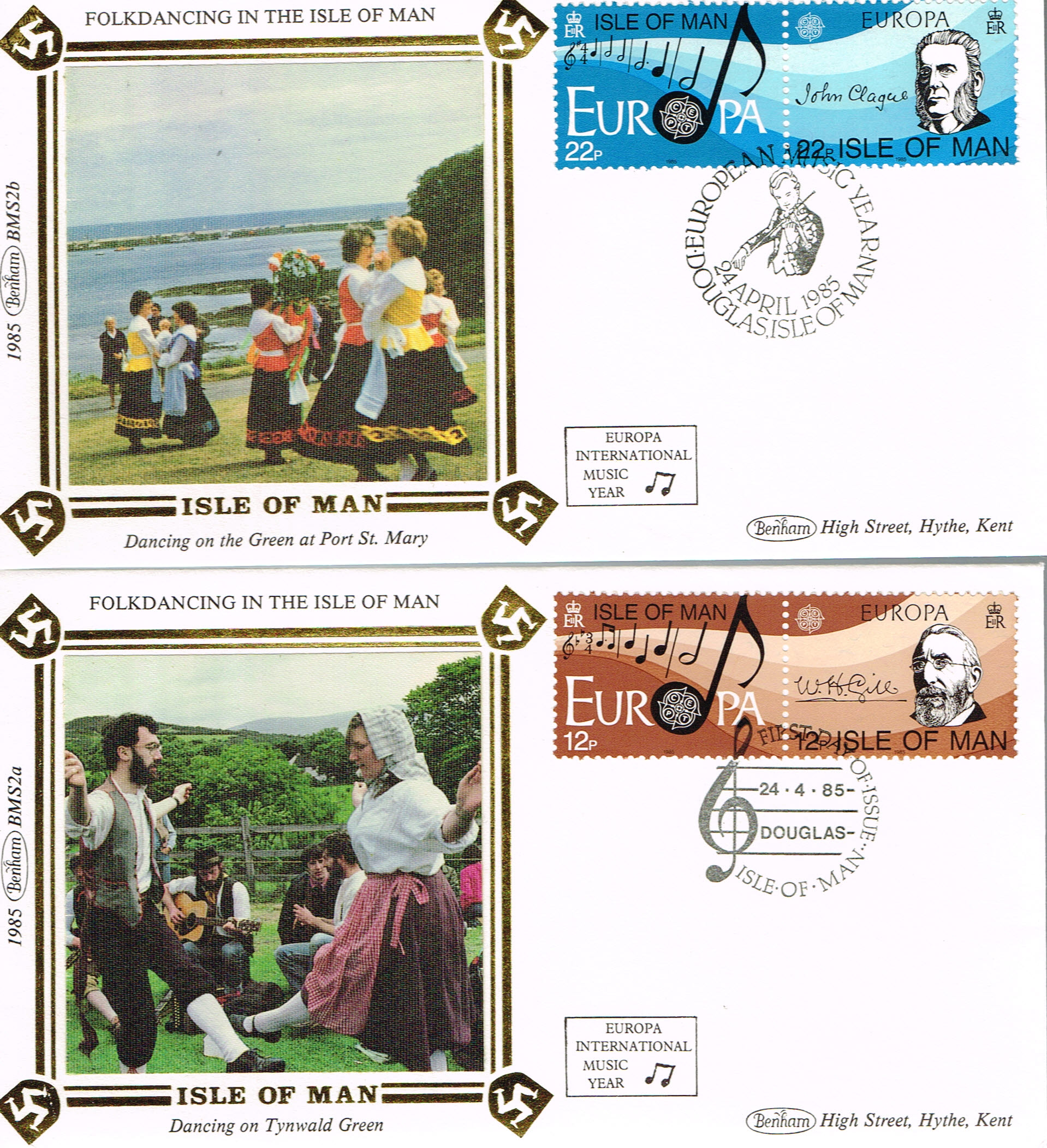 1985 Folk Dancing Isle of Man Douglas Benham silk covers Europa stamps BMS2a BMS2b refE216
