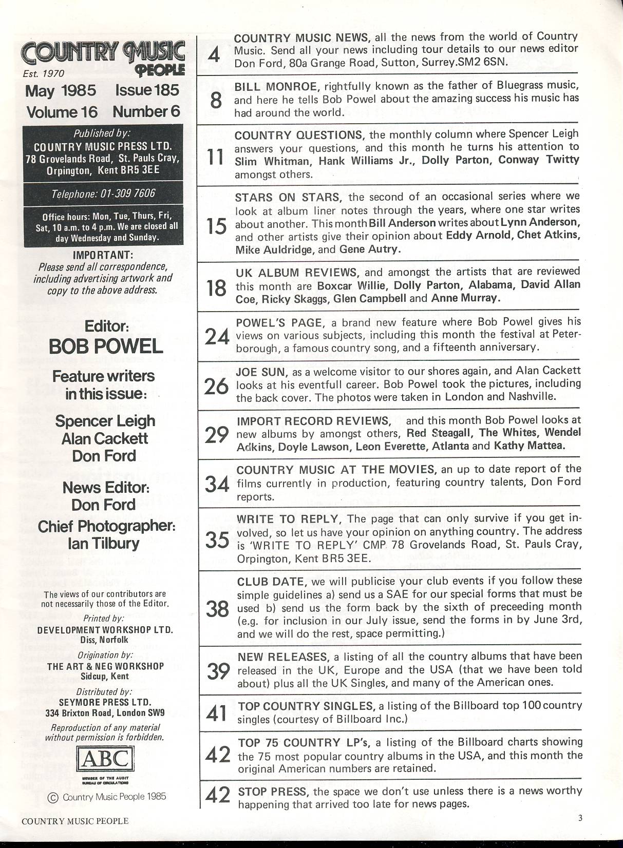 1985 May Country Music People magazine BILL MONROE, JOE SUN ref102315