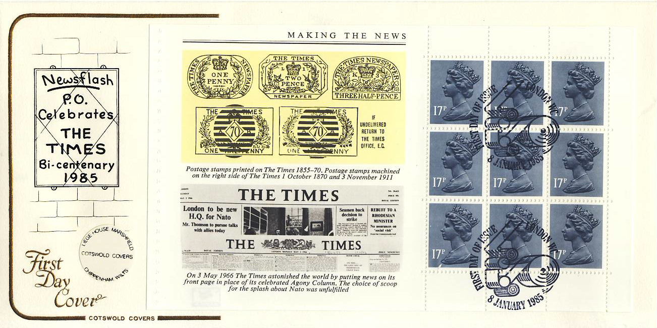 1985 The Times Making the News First Day Cover stamp booklet pane Cotswold Covers refF664