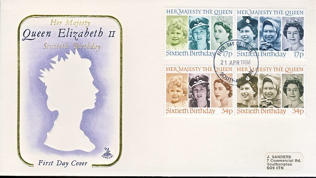 1986-04-21 Queens 60th Birthday Stamps FDC Mercury First Day Cover refCD278