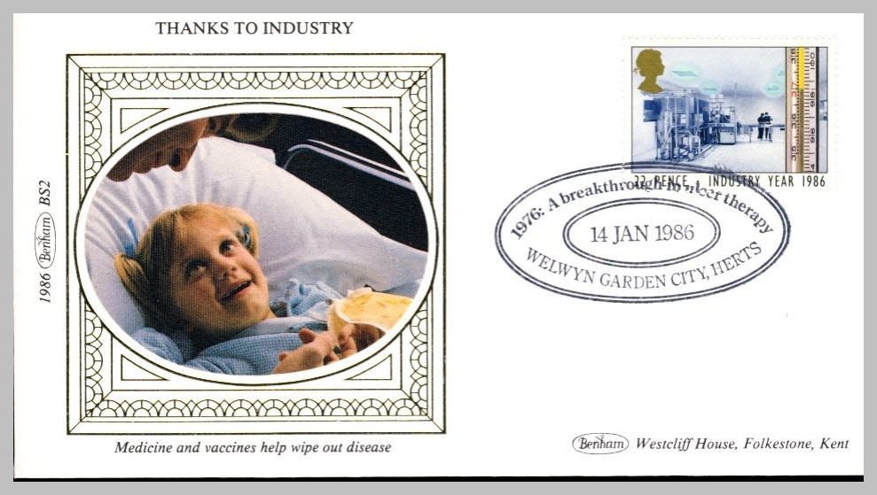 1986 BS2 Medicine Vaccines Thanks to Industry Welwyn Garden City Ltd Edition small silk cover refF38