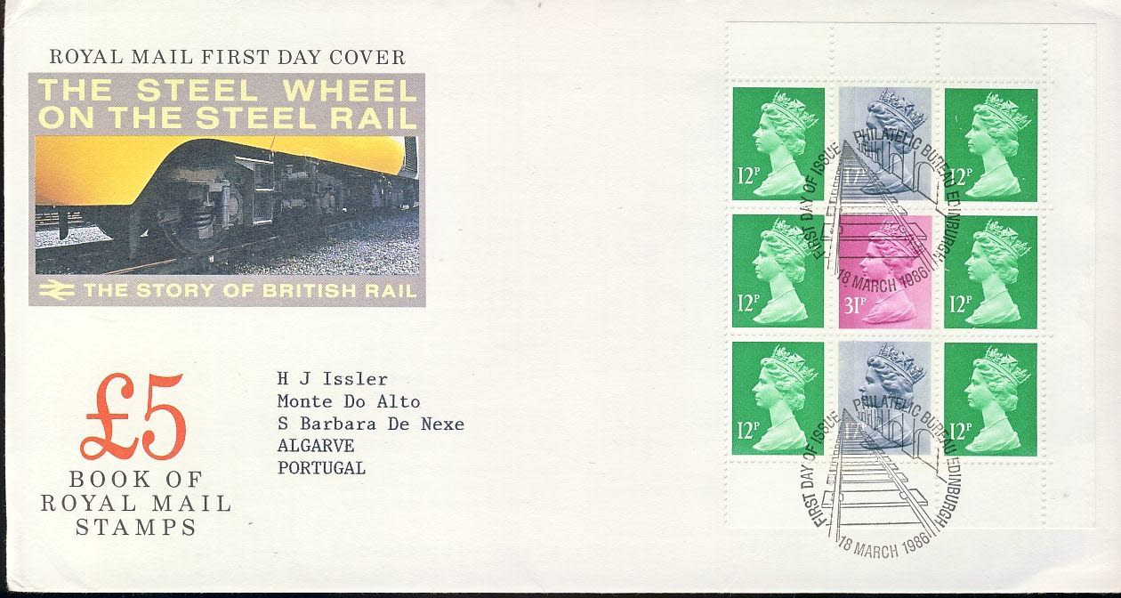 1986 Steel Wheel design £5 Stamp Book FDC Story of British Rail Royal Mail refD151