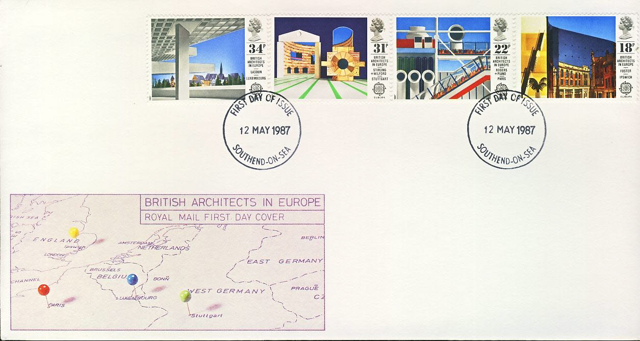 1987-05-12 British Architects in Europe Stamps FDC SOUTHEND-ON-SEA fdi refcd437