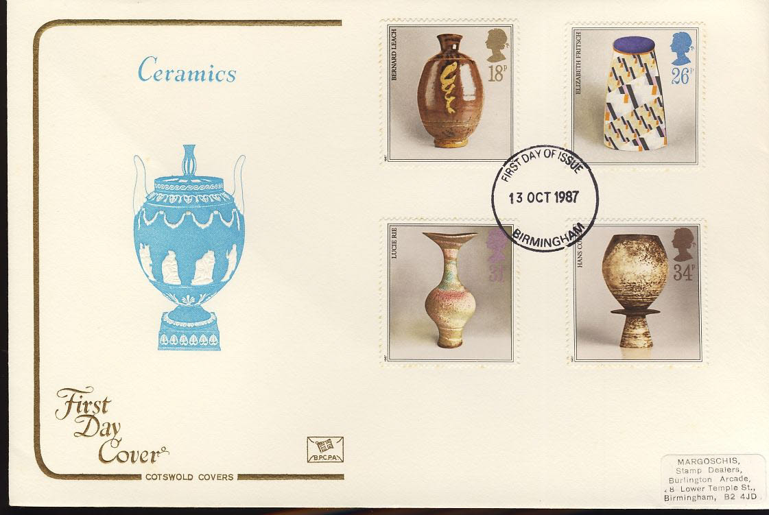 1987-10-13 Studio Pottery Stamps FDC Ceramics Cotswold First Day Cover refCD259