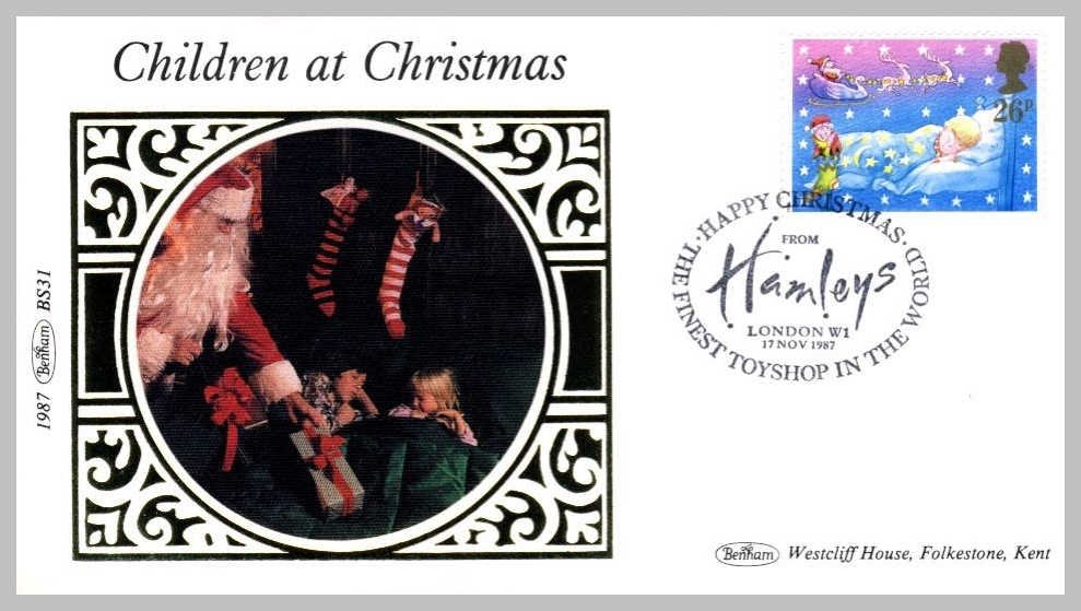 1987 BS31 Children at Christmas Santa Claus HAMLEYS Toyshop Ltd Edition small silk cover refF34