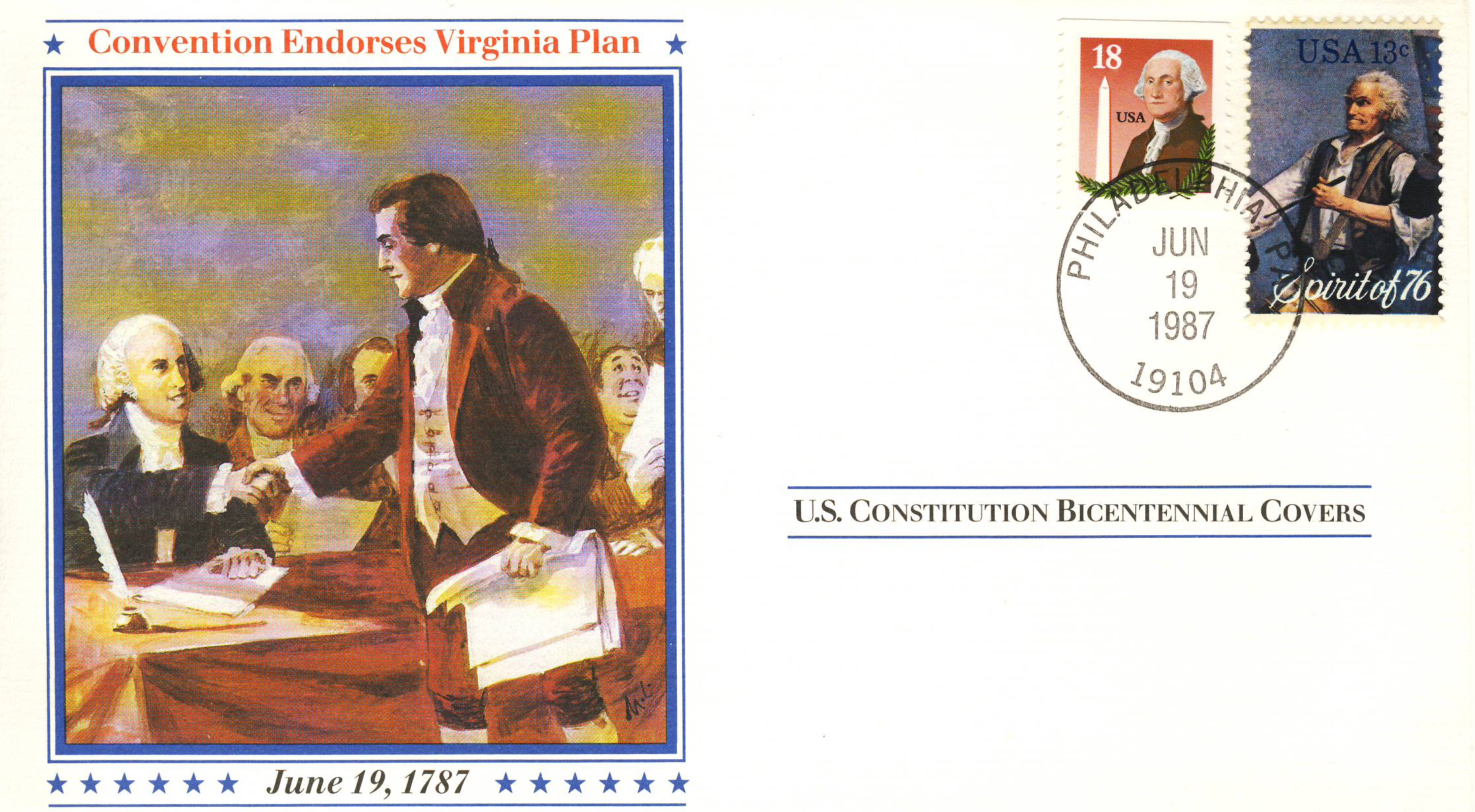 1987 June 19th PHILADELPHIA PA Virginia Plan Endorsed 1787 US Constitution Bicentennial Stamps Cover refG500