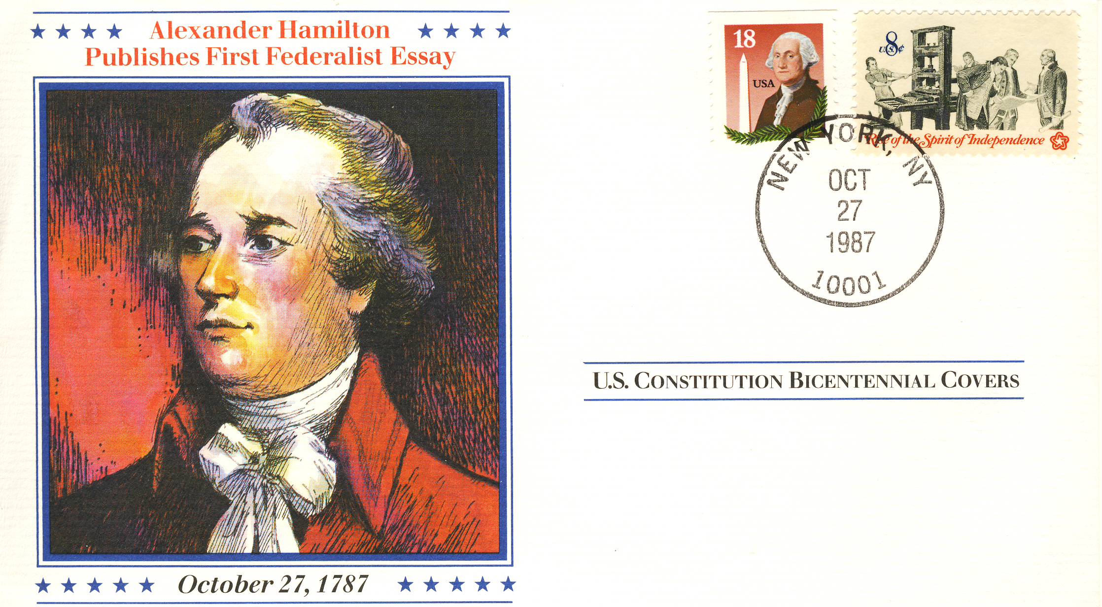 1987 October 27th NEW YORK NY Alexander Hamilton publishes 1st essay 1787 US Constitution Bicentennial Stamps Cover refG500