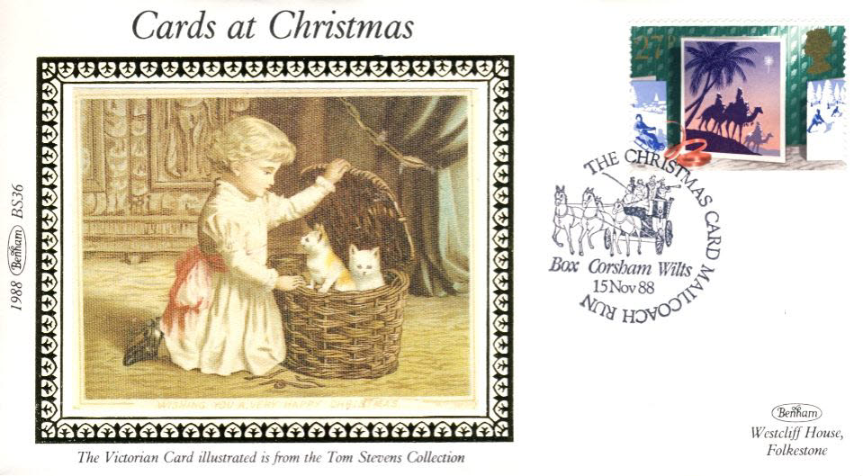 1988 BS36 Cards at Christmas Mailcoach Run Box Corsham Wilts Ltd Edition small silk cover refF52 Cover in very good condition. Please see larger photo for details.