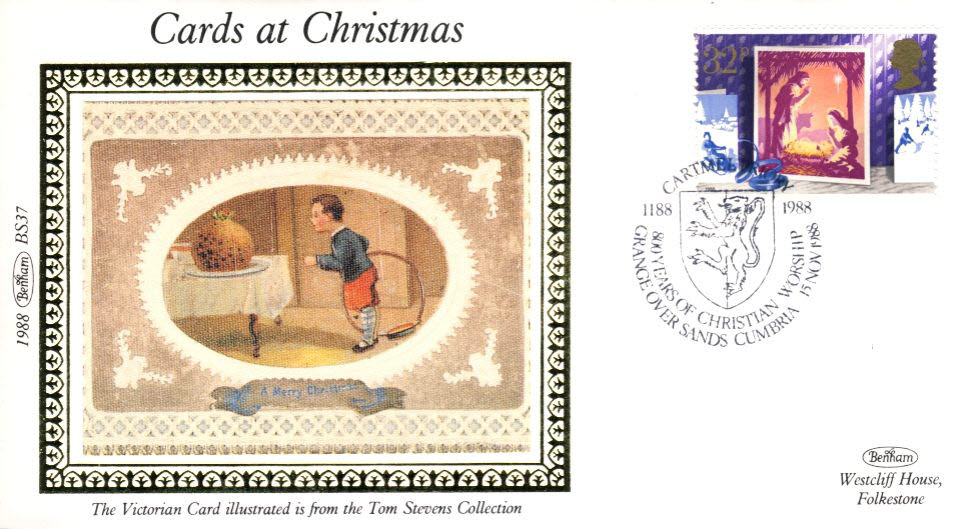 1988 BS37 Cards at Christmas Cartmel 800 years of Christian Worship Ltd Edition small silk cover refF53