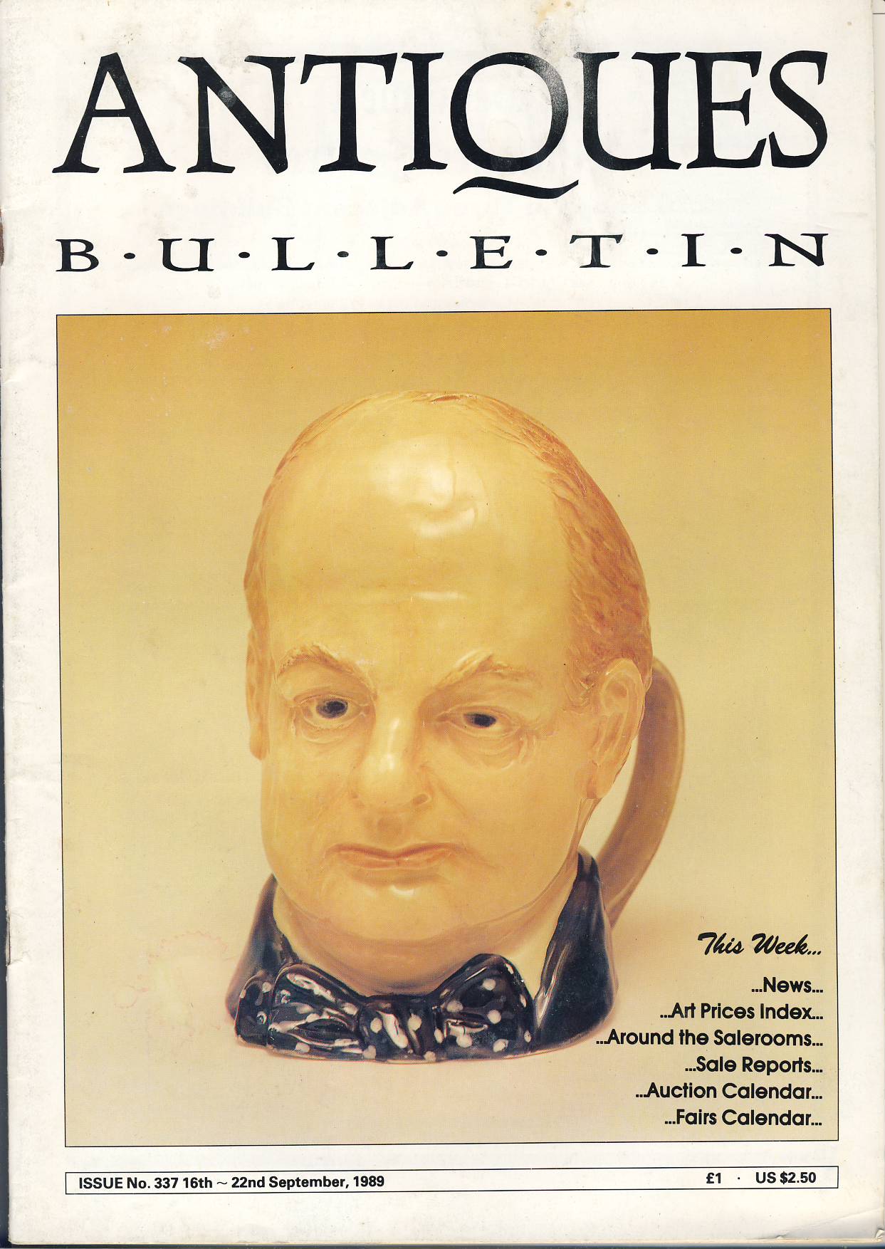 1989 #337 Antiques Bulletin magazine with 3 page Art Prices ref102792