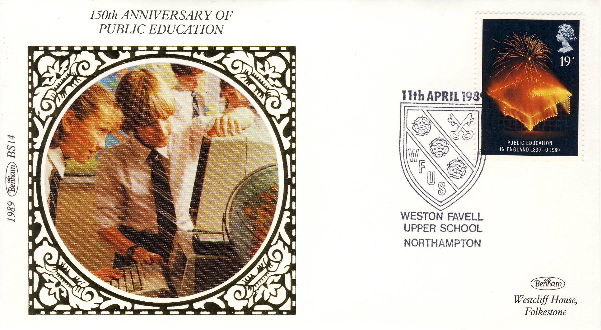 1989 BS14 LTD EDITION PUBLIC EDUCATION ENGLAND Benham Sm Silk Cover refF550 150th Anniversary Postmarked Weston Favell Upper School Northampton11th April 1989 Limited Edition Very good condition. Unsealed with insert card. Ideal for gift, money envelope etc