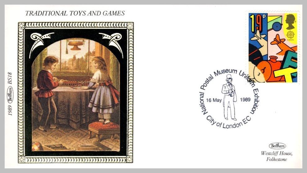 1989 BS18 Traditional Toys and Games Postal Museum Uniform Exhibition Ltd Edition small silk cover refF70