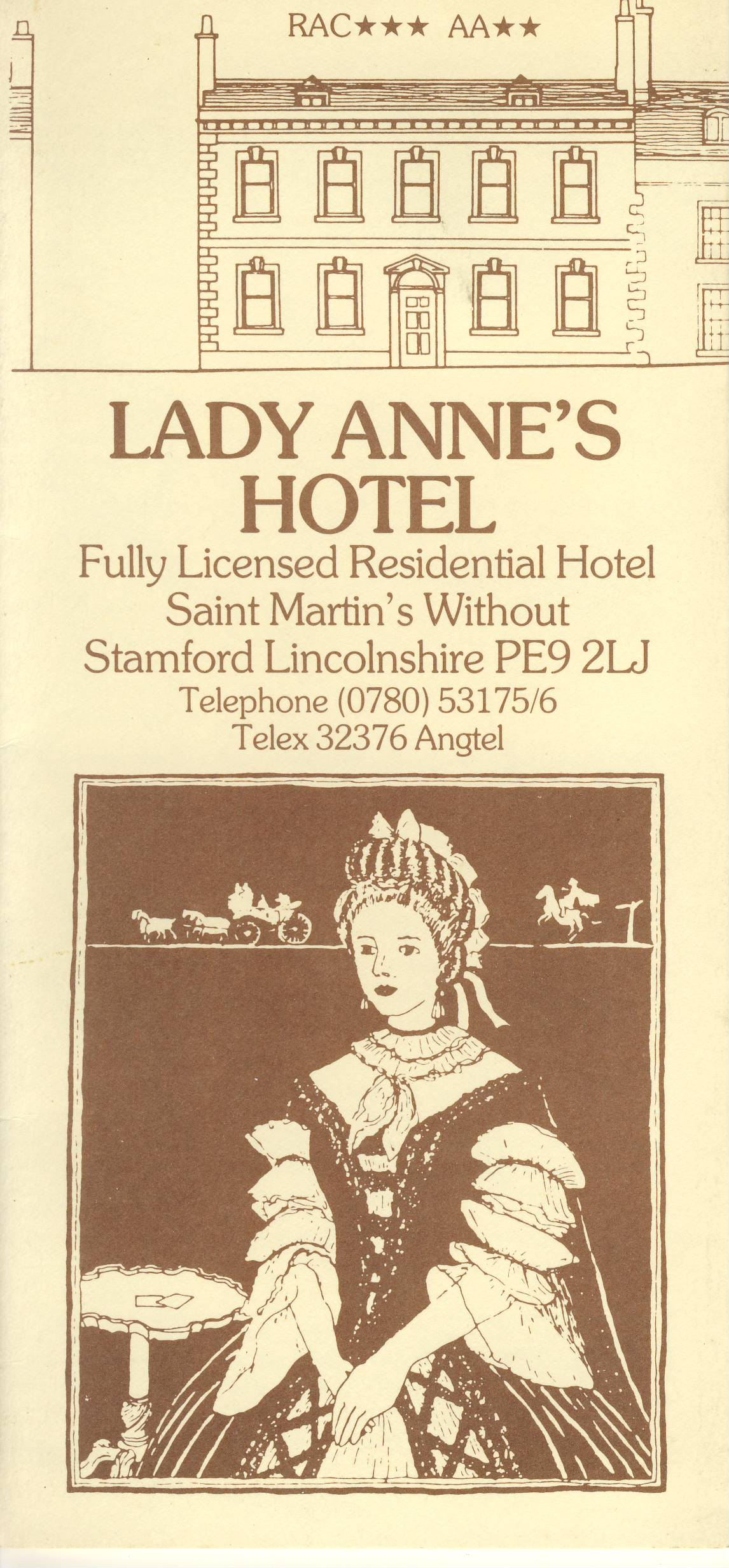 1990 Lady Anne’s Hotel STAMFORD vintage brochure / map ref102229