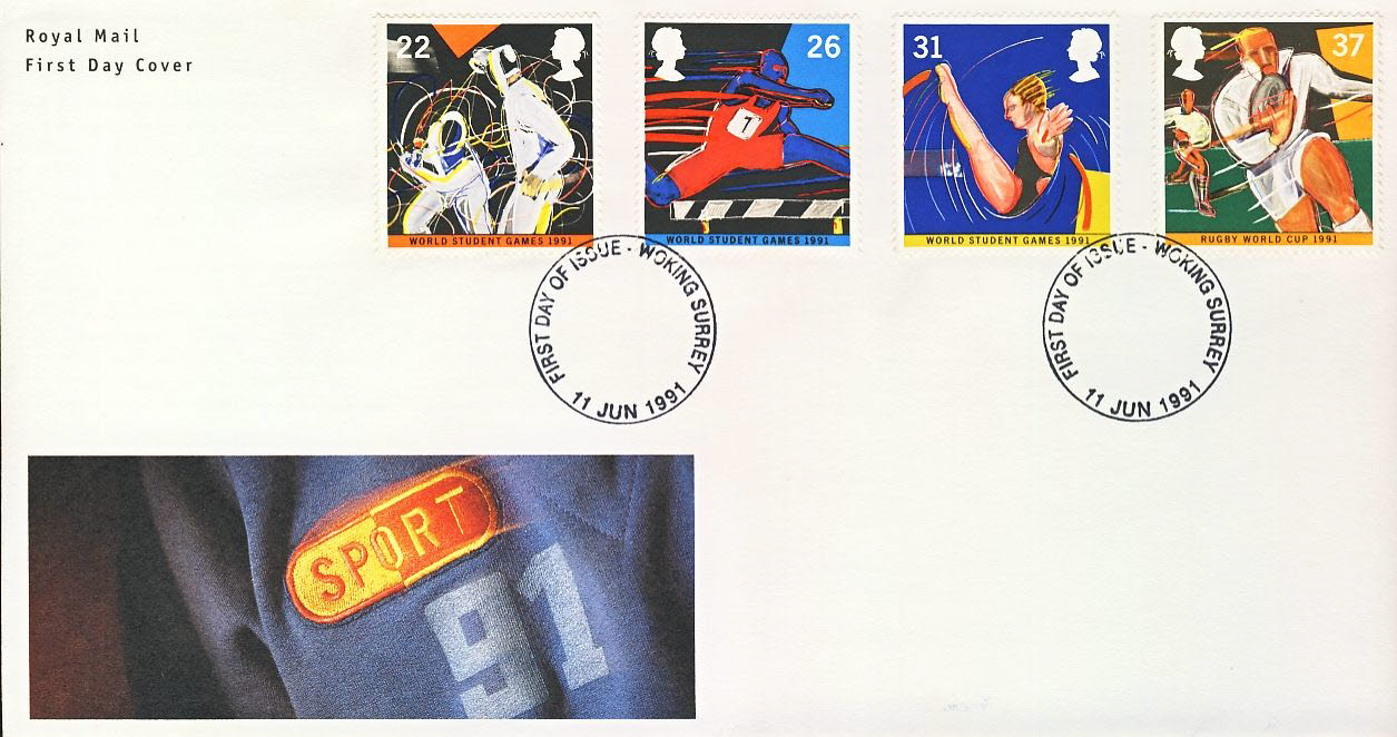 1991-06-11 Sports Stamps FDC cover WOKING fdi refcd459