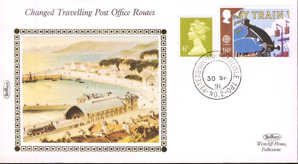 1991 Benham sm silk cover Changed Travelling Post Office Routes with Peterborough to Carlisle CDS. No insert. A371