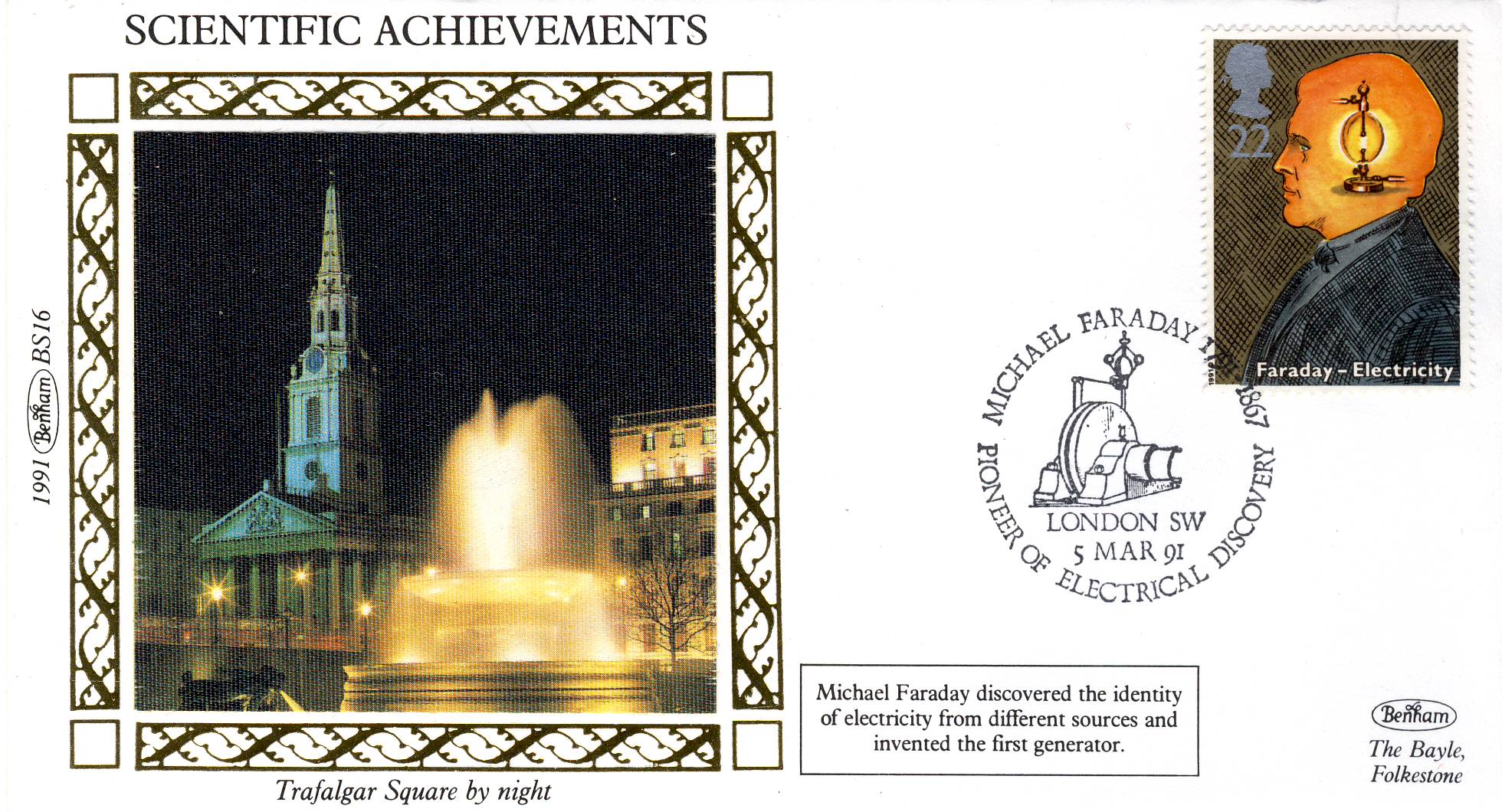 1991 BS16 Michael Faraday Electricity LIMITED EDITION Benham Sm Silk Cover refF471 Scientific Achievements LIMITED EDITION postmarked London SW 5th March 1991 Very good condition. Unsealed with insert card. Ideal for gift, money envelope etc