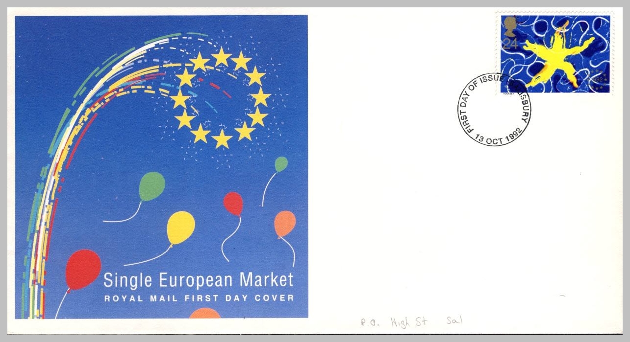 1992-10-13 Single European Market Stamps FDC Salisbury postmark fdi refE236