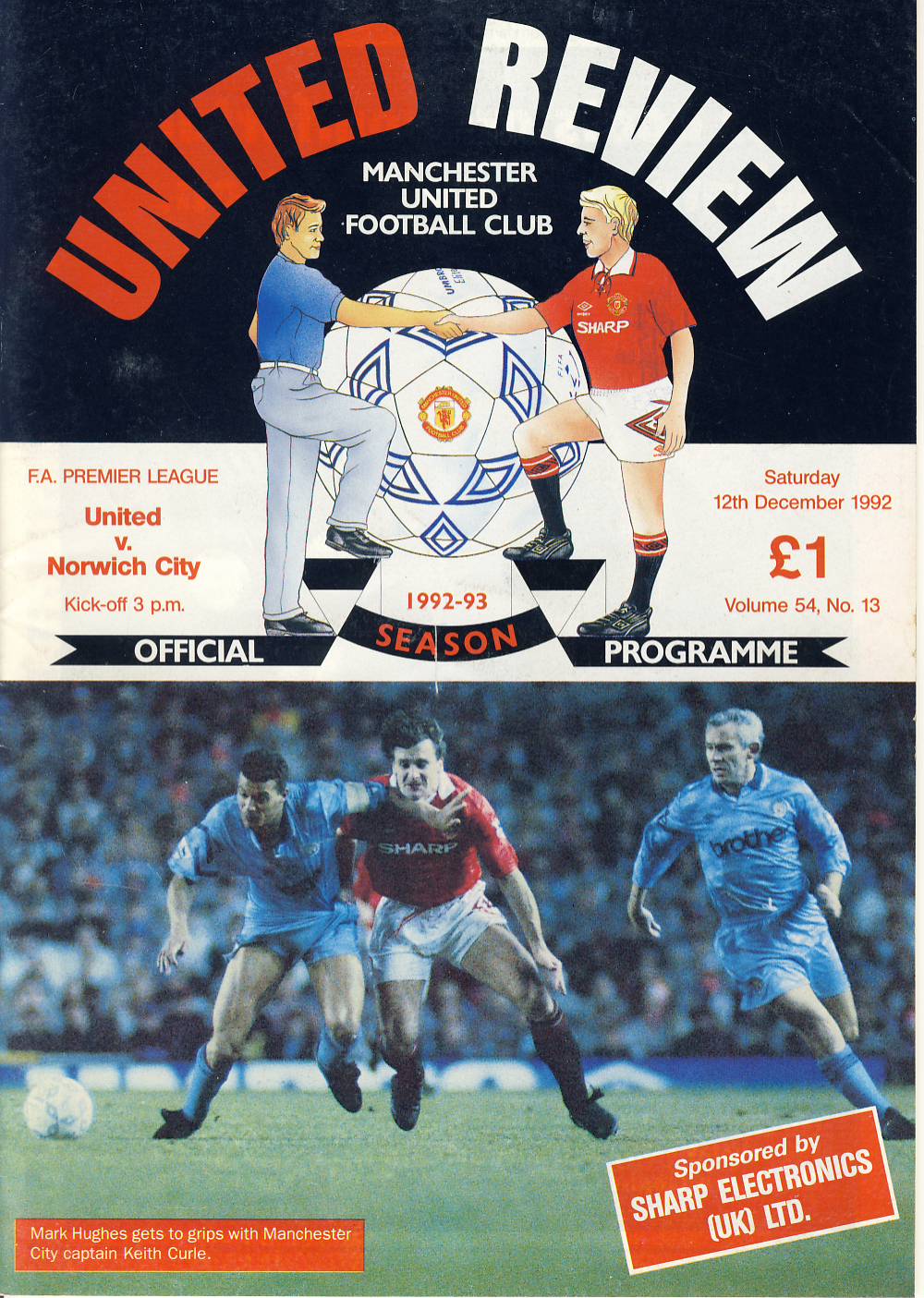 1992 12th December Manchester Utd v Norwich City Review Football Programme ref103040