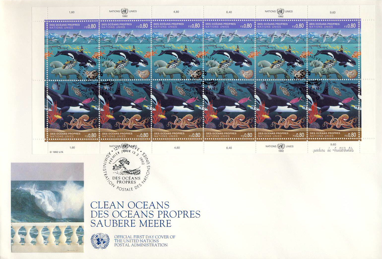1992 UN United Nations Clean Oceans stamps sheet cover refF424