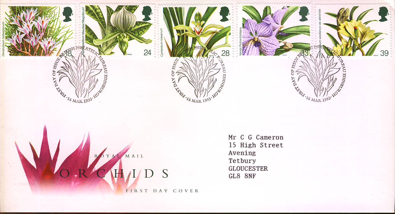1993-03-15 Orchids Conference Royal Mail FDC Bureau A490