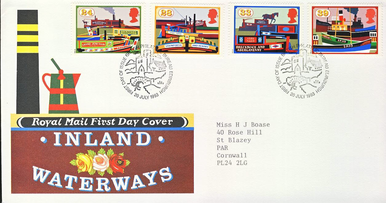 1993-07-20 Canals Inland Waterways Stamps FDC  cover refcd445