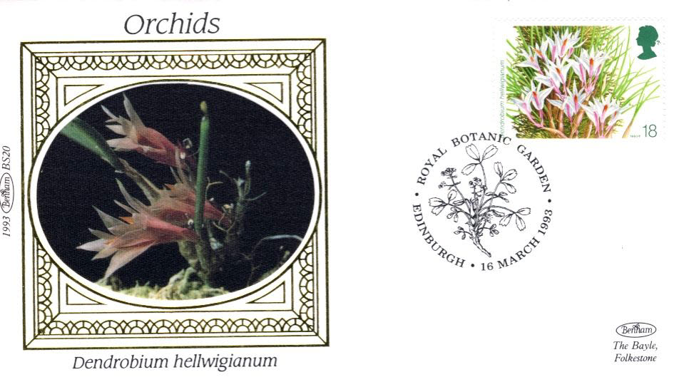 1993 BS20 ORCHIDS Dendrobium hellwigianum Royal Botanic Garden Ltd Edition small silk cover refF55