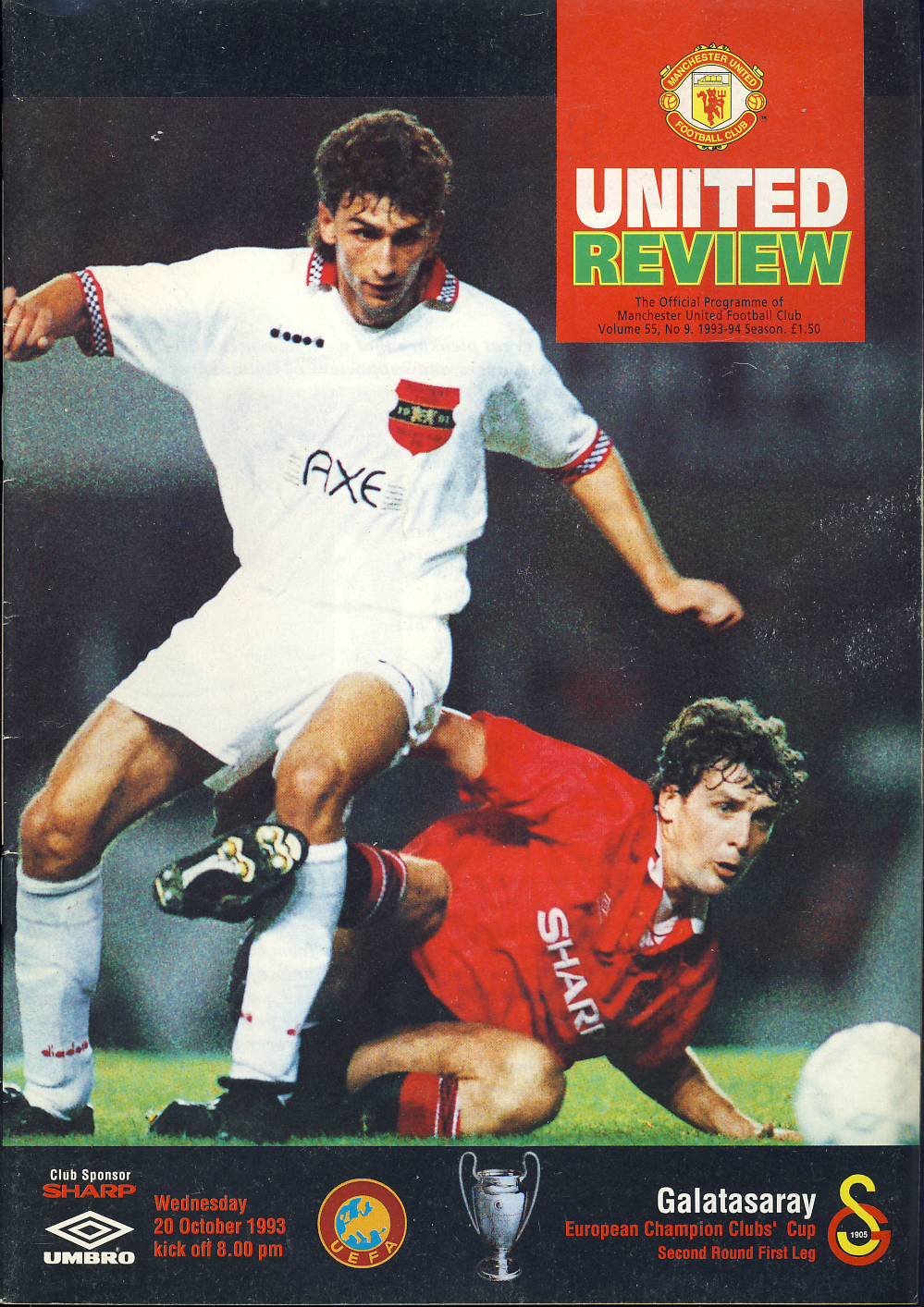 1993 October 20th Manchester United v GALATASARAY SC Review Football Programme ref101919
