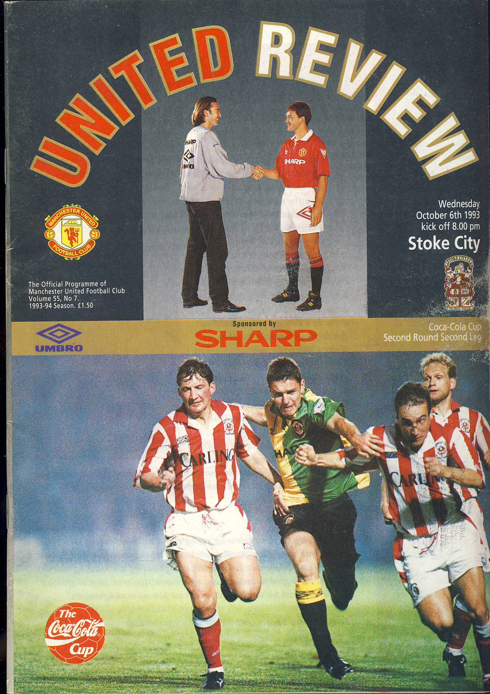 1993 October 6th Manchester United v STOKE CITY Review Football Programme ref101922