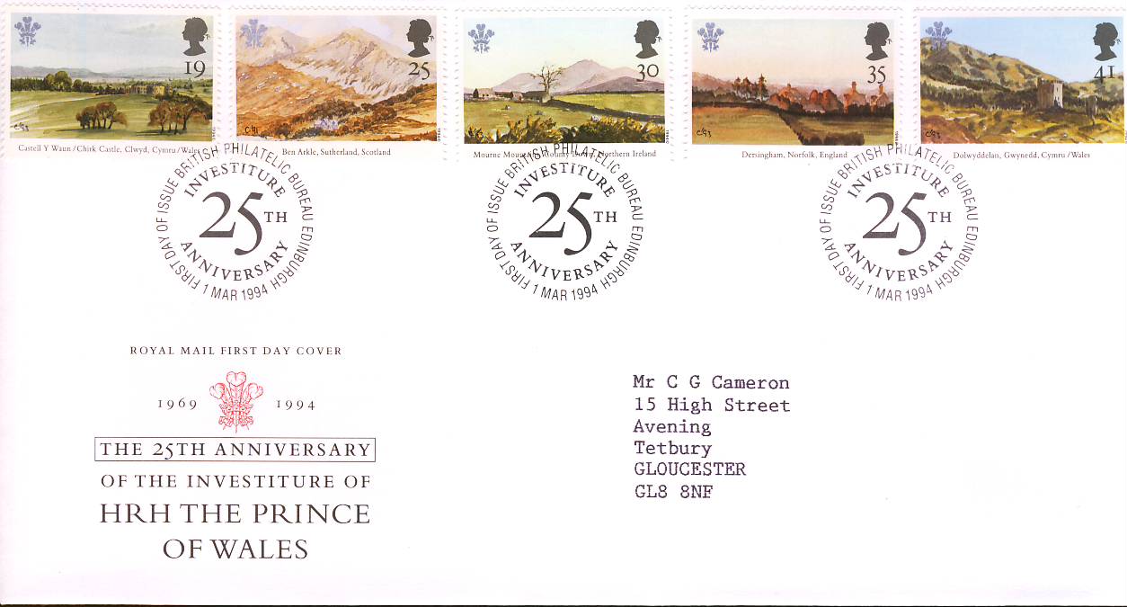 HRH Prince of Wales 25th Anniversary Investiture Anniversary First Day Cover Bureau fdi 1 March 1994 with insert card. refA498 1994-03-01 HRH Prince of Wales 25th Anniversary Investiture Anniversary FDC Bureau fdi 1 March 1994 with insert card. refA498 Condition Please see full description and photo for condition report. Feel free to ask any questions. Thank you. Condition Report Please see full description and photo for condition report. Feel free to ask any questions. Thank you. Reference 1994-03-01 HRH Prince of Wales Investiture Anniversary FDC A498