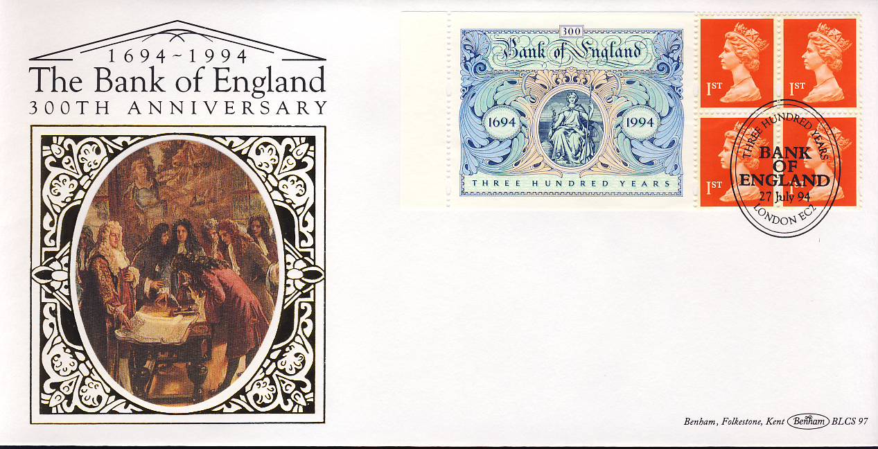 1994-07-27 The Bank of England 300th Anniversary stamps BLCS97 Benham Cover refG281