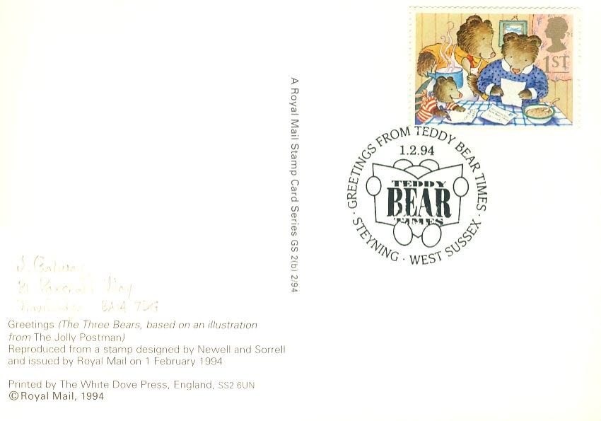 1994 Greeting from Teddy Bear Times STEYNING Vintage Postcard refP1 Please see BOTH large photos and description for details.