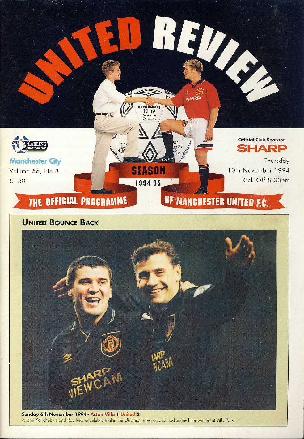1994 November 10th Manchester United v MANCHESTER CITY Review Football Programme ref101937