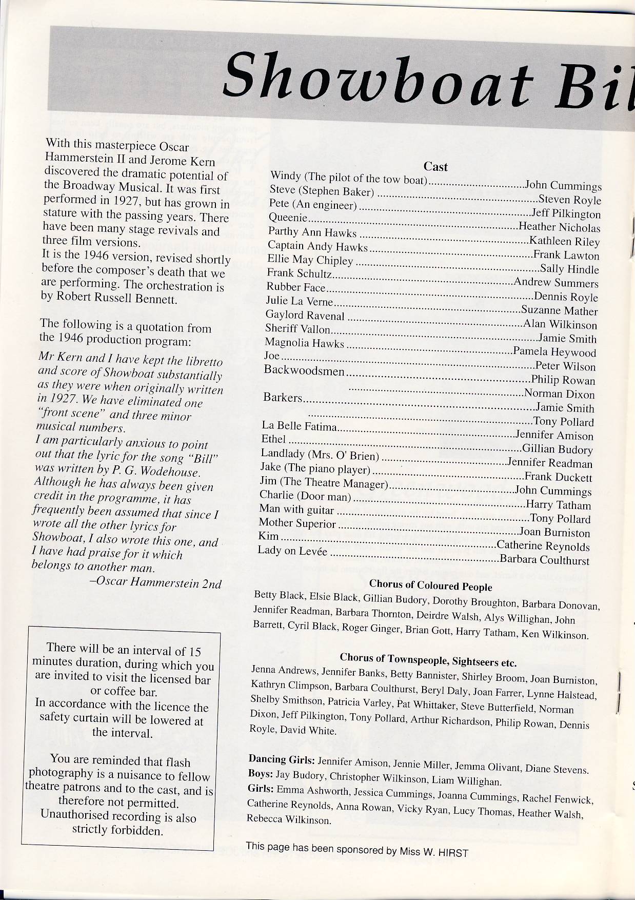 1994 SHOWBOAT Burnley & District Gilbert Sullivan Society Mechanics Theatre Programme ref102847