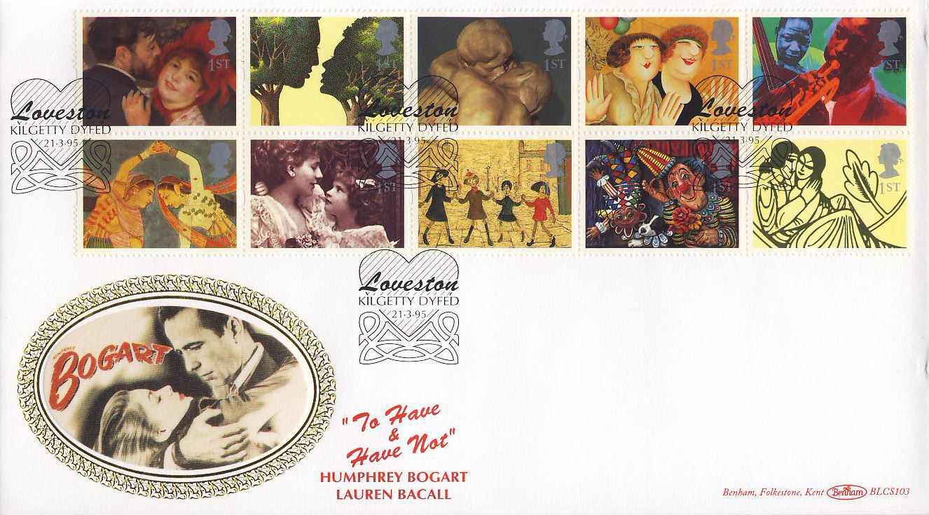 1995-03-21 Greetings Stamps Art HUMPHREY BOGART LAUREN BACALL FDC BLCS103 refG276