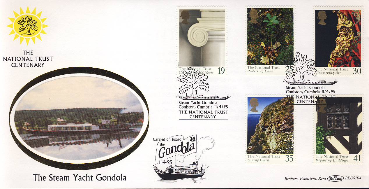 1995-04-11 National Trust Centenary STEAM YACHT GONDOLA Coniston FDC BLCS104 refG297