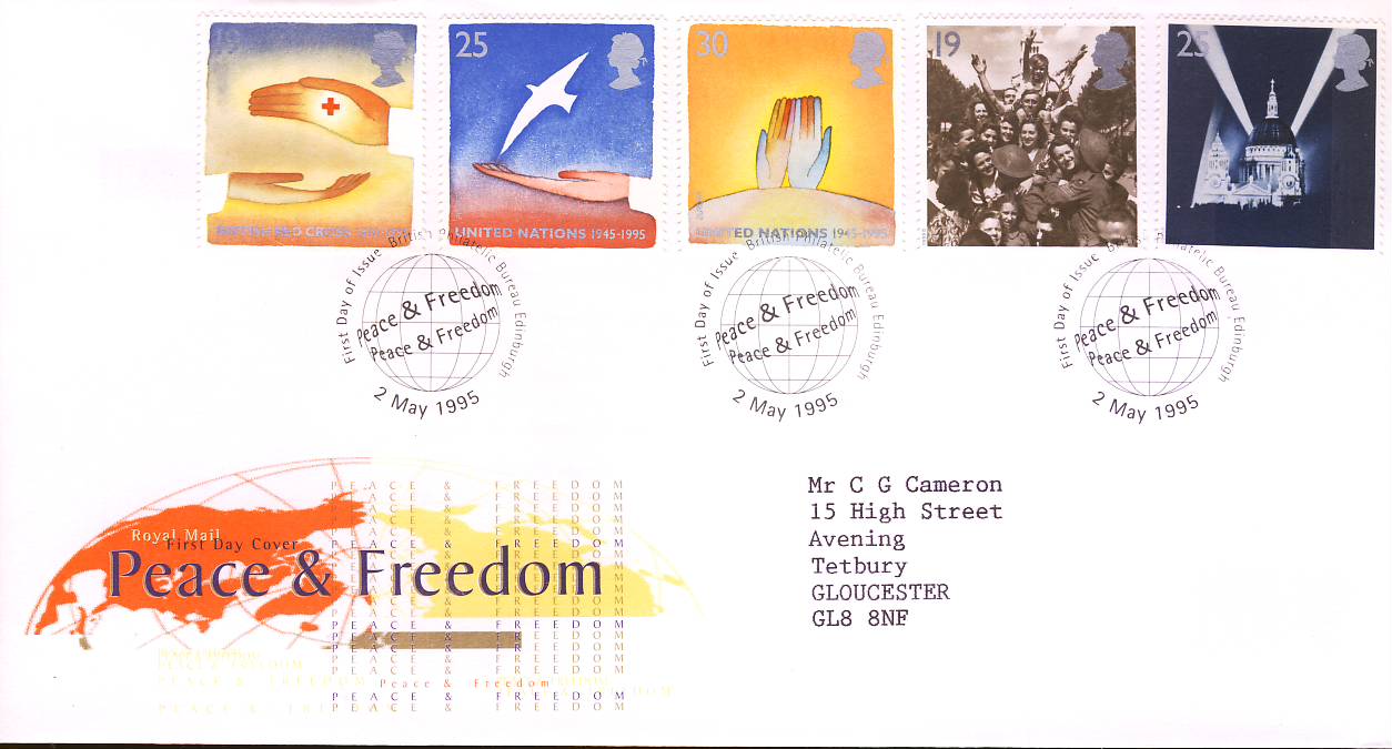 1995-05-02 Peace and Freedom Royal Mail FDC Bureau a508