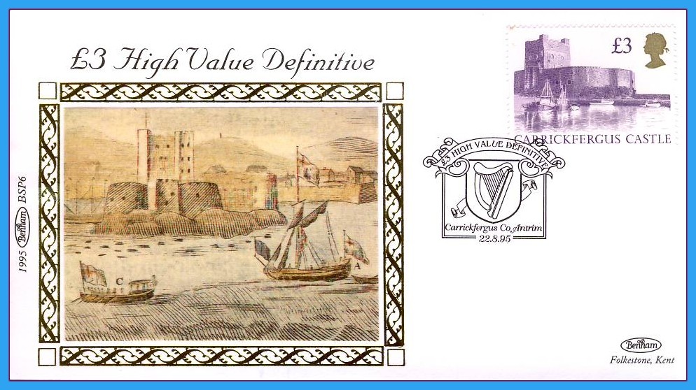 1995 BSP6 LIMITED EDITION Benham Small Silk Cover High Value Definitive CARRICKFERGUS CASTLE stamp.