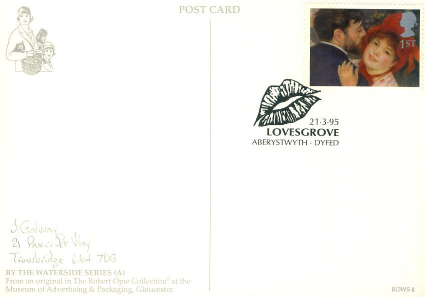 1995 GROCERS Robert Opie LOVESGROVE Aberystwuth Dyfed PM Vintage Postcard refP1 Please see BOTH large photos and description for details.