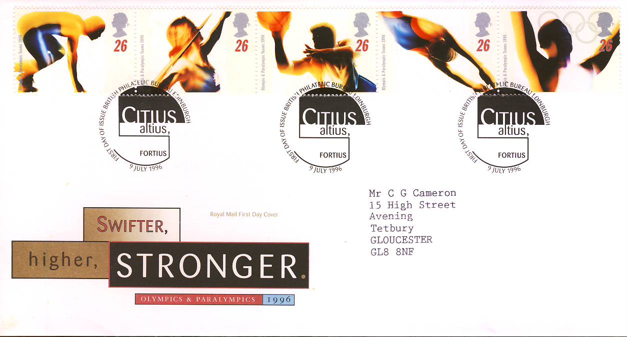 1996-07-09 Olympic and Paralympic Games FDC Bureau Edinburgh A518