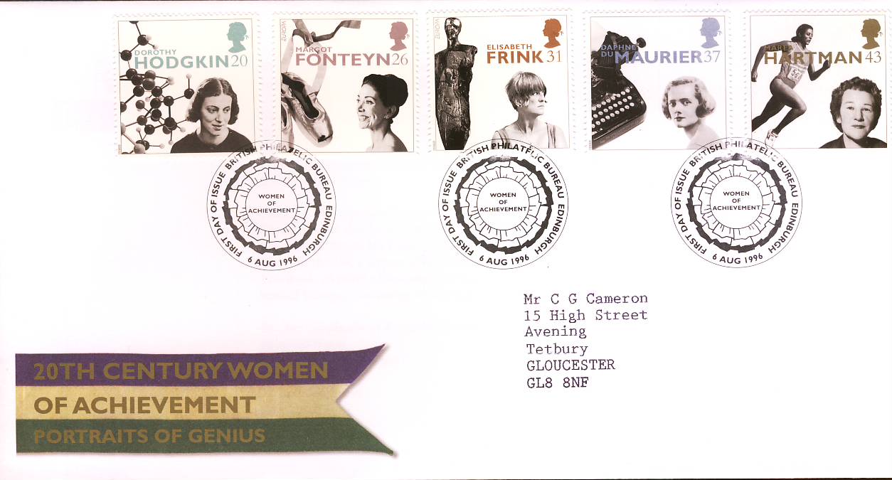 Famous Women Achievers First Day Cover Bureau fdi 6 Aug 1996 with insert card. refA520 1996-08-06 Famous Women Achievers FDC Bureau fdi 6 Aug 1996 with insert card. refA520 Condition Please see full description and photo for condition report. Feel free to ask any questions. Thank you. Condition Report Please see full description and photo for condition report. Feel free to ask any questions. Thank you. Reference 1996-08-06 Famous Women Achievers FDC Bureau A520