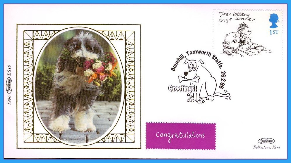 1996 BS10 LIMITED EDITION Benham Small silk cover DOG special hand stamp BONEHILL, Tamworth, Staffs.