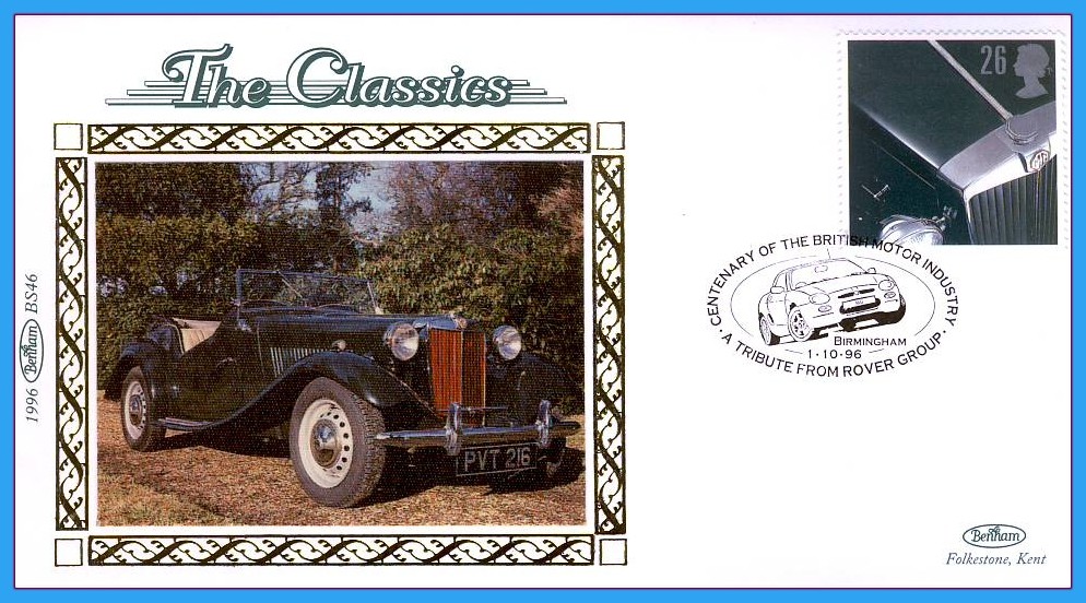 1996 BS46 Limited Edition ROVER Classic Cars Benham small silk cover BIRMINGHAM special hand stamp Centenary of the British Motor Industry.