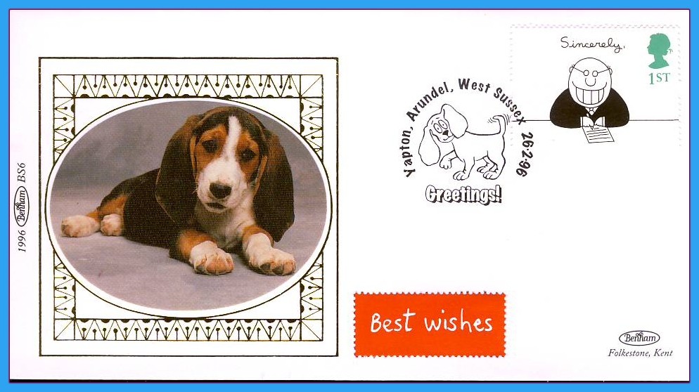 1996 BS6 LIMITED EDITION Benham Small silk cover GREETINGS Puppy YAPTON, Arundel, West Sussex special handstamp.