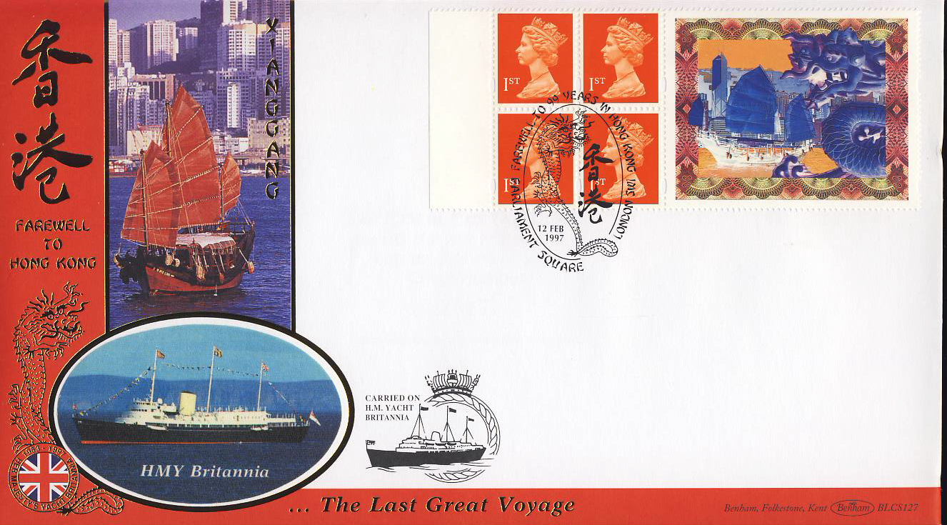 1997-02-12 Farewell to Hong Kong Stamps BRITANNIA Benham Cover refG277