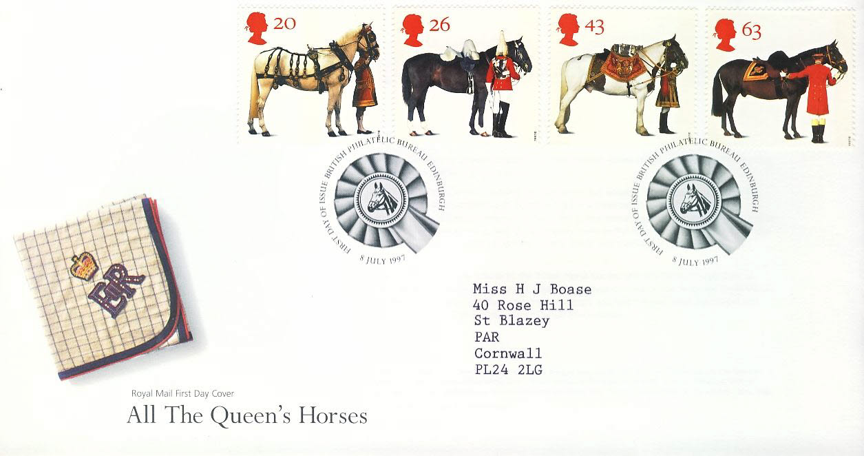 1997-07-08 The Queens Horses Stamps FDC  cover refcd450
