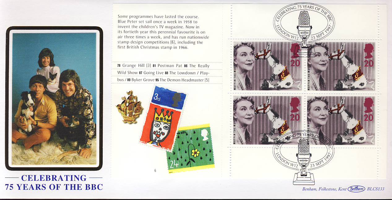 1997-09-23 Celebrating 75 Years of the BBC with BLUE PETER & Muffin the Mule Stamps refG293