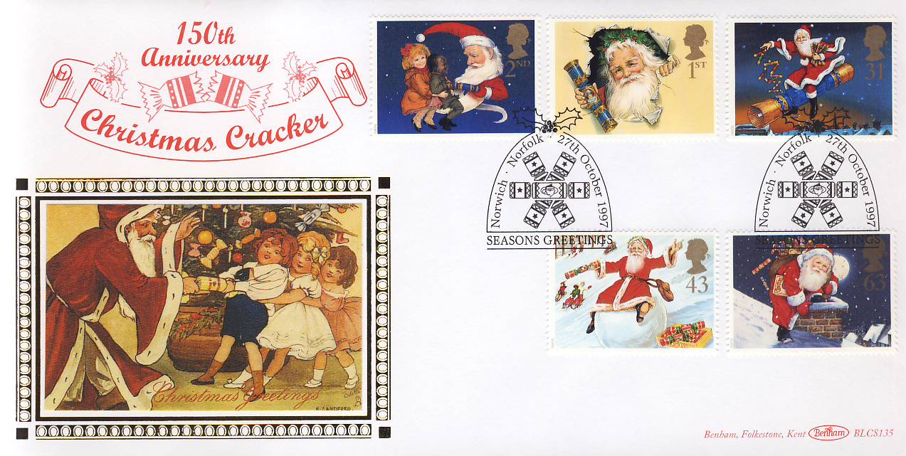 1997-10-27 Christmas Crackers Stamps FDC LTD EDITION Benham Cover refG311