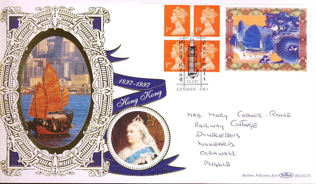 1997-02-12 Limited Edition Hong Kong Farewell Benham Silk First Day Cover with Portrait of Queen Victoria refalbB10