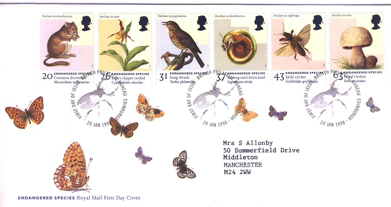 1998-01-20 Endangered Species Royal Mail FDC Bureau fdi with insert card refA31