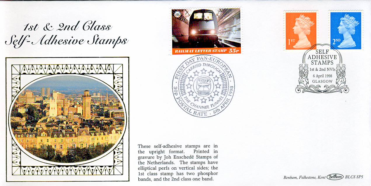 1998-04-06 Self Adhesive Stamps LTD EDITION Railway Pan European Channel Tunnel Benham Silk Cover refG251